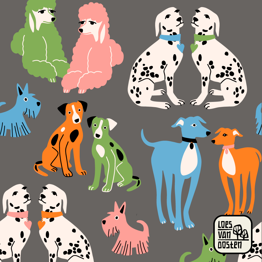 1 dopamine dogs surface pattern design for sheer socks, spring collection april 2025.