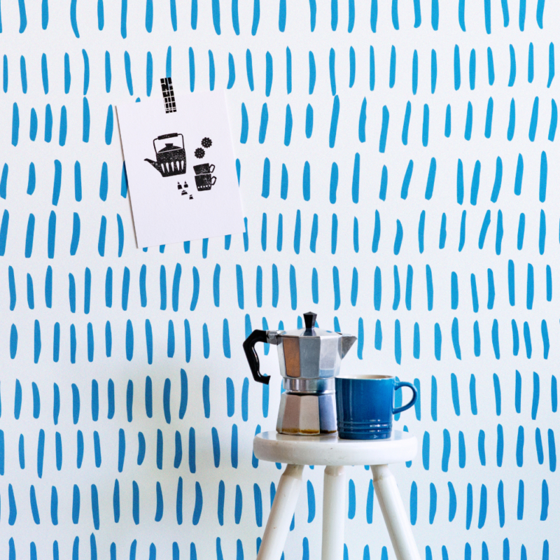 Brighten up your room with this pen wall design. The print looks like a doodle in your sketchbook and has a gradient on both sides. This wallpaper is off white with a matte finish. Available in ten colours.